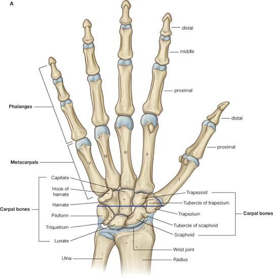 Your wrists have a lot of moving parts. They start where your two forearm bones, the radius and ulna, meet with three of the eight carpal bones on each hand. An array of ligaments connect the many bones, and muscles and tendons lie above and below the bones to move the wrist and fingers.