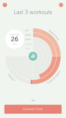 It comes in a chargeable tube-shaped case, and can be paired with your smartphone app. The app (which feels like a video game) allows you to visually see if you’re doing the exercises well. As you lift your pelvic floor, you can watch a little diamond bounce up and down on the screen, depending on the strength or frequency of your squeezing motion. The 5 minute workout takes you through several different kinds of exercises. Lifting, pulsing, holding, speed and stepping. Strength is measured in LV’s – a unit of measurement created by Elvie, which isn’t totally clear. Regardless, I found this workout rather entertaining and actually became very competitive with myself.